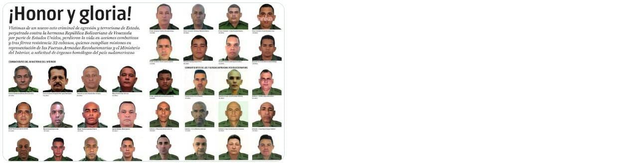 Venezuela’da hayatını kaybeden 32 Kübalı askerin isimleri şu şekilde: